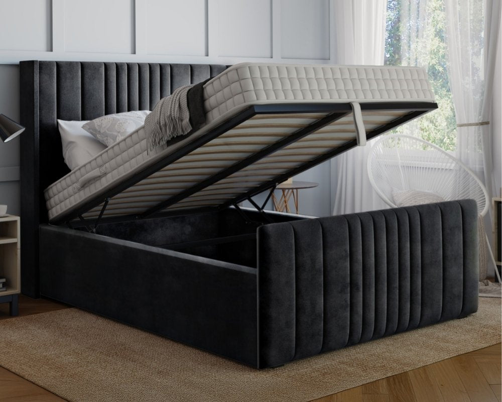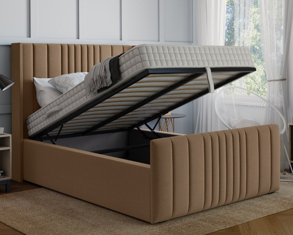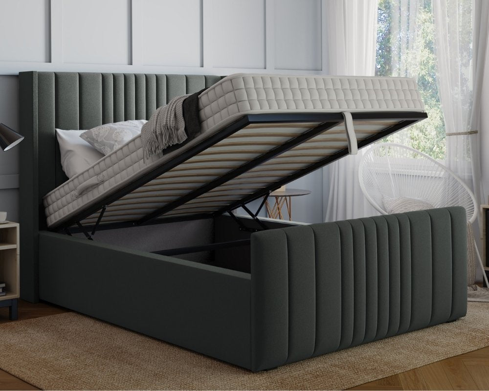 Uplift your room with the VerticalCraft Divan Bed, styled with clean vertical lines across both the headboard and footboard for a balanced and modern look. Its fully padded form blends elegance with everyday functionality.