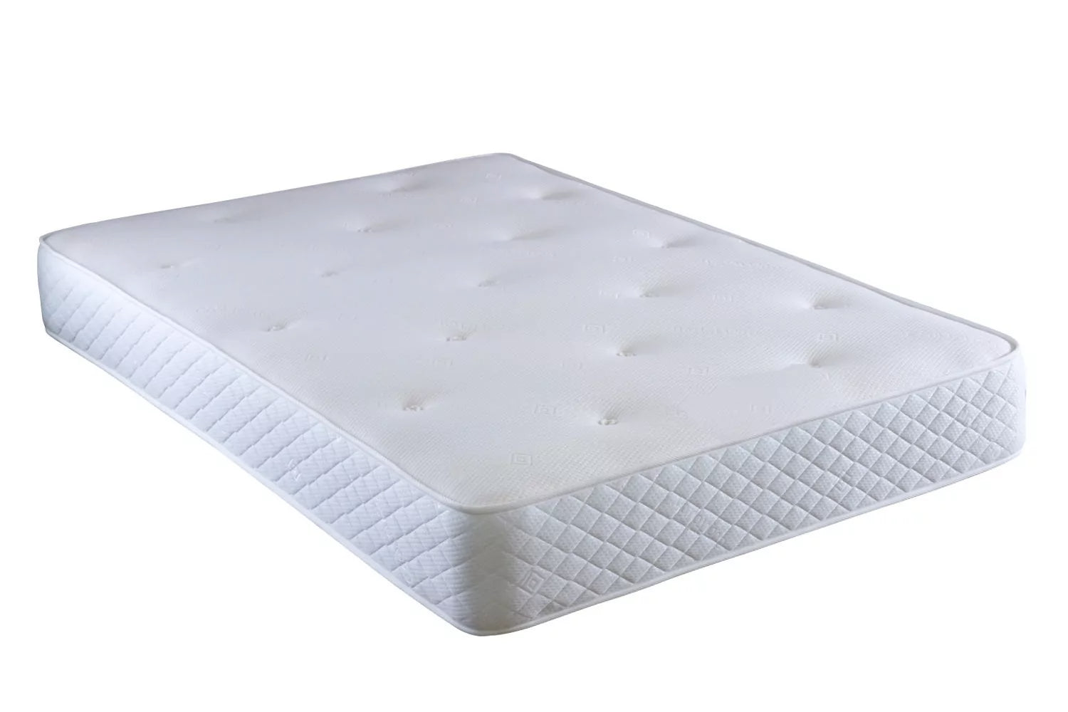This Mattress is a medium coil sprung mattress that has been designed to maximise support by using high specification UK manufactured coil springs and luxury rebounce fibre fillings for extra longevity. Deep layers of fillings cover the spring system to provide a plush sleeping domain which ensures a restful night’s sleep. The Memory foam top layer will ensure soft comfortable support for a perfect nights sleep. The luxurious fabric used to cover the mattress is soft to the touch and flexible. There are also flag stitched turning handles on both sides of the mattress for easy care and the fully breathable fabric will guarantee that the mattress stays fresh and healthy for many years to come.